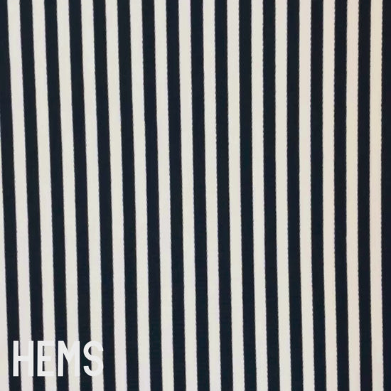 Stretchy. Textured. Made to move. This black and white striped ribbed knit fabric combines comfort, stretch, and subtle texture — perfect for tops, dresses, loungewear, or trims like cuffs and collars. It’s soft, flexible, and easy to sew.